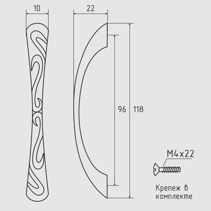 Ручка-скоба мебельная `SANBERG` мет 96 дуга резной вьюнок (золото) [инд. уп.]