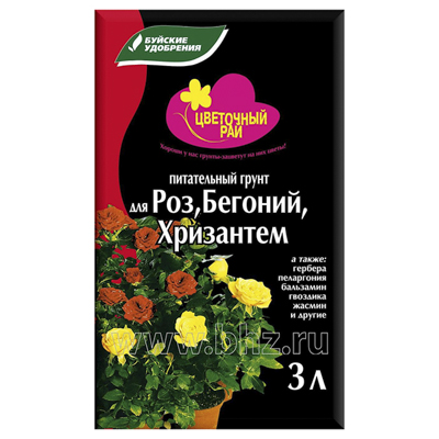 Грунт для Роз, бегоний и хризантем 'Цветочный рай' 3 л (БХЗ) (1/6/540)