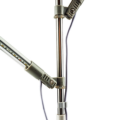 Фитолампа для растений на штативе с тремя LED лампами полного спектра. Длина одной ветки лампы 28 см, в каждой лампе 24 светодиода. Длина кабеля - 150 см. Фитосветильник имеет пульт управления с таймером, переключением режимов освещения и яркостью освещения. Таймер - 3 режима: 3, 9 и 12 часов работы. 3 режима освещения - Нейтральный белый, Белый + синий и красный, синий + красный. 10 уровней яркости. Высота светильника регулируются, с помощью 3х отрезков по 30 см. Поэтому высота может быть 30, 60 и 90 см. Ветви лампы можно установить на любой высоте, они также вращаются на 360 градусов, и имеют регулировку наклона. Все 3 ветви лампы имеют один USB кабель и один пульт управления, поэтому НЕ могут работать отдельно. Мощность одной ветви лампы - 5 Вт. Лампа имеет 2 вида крепления - пластиковая круглая подставка (диаметр 20 см) и пластиковый колышек, который можно установить прямо в горшок с растением. Напряжение светильника 5В, на конце разъем USB, может работать от компьютера или адаптера питания, в комплект поставки не входит и приобретается отдельно