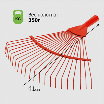 Грабли веерные - ручной сельскохозяйственный инструмент, садовый инвентарь. Служат для очищения территории, сбора опавших листьев и скошенной травы. Специальная поперечная пластина продлевает срок службы граблей. Зубья из толстой проволоки способствуют тщательному сбору листвы и мусора, препятствуя при этом повреждению проросших растений.
