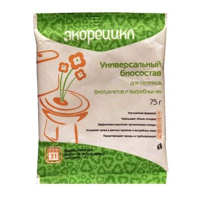 -----Биосостав для туалетов Дачных и выгребных ям `ЭКОРЕЦИКЛ` 75 гр порошок