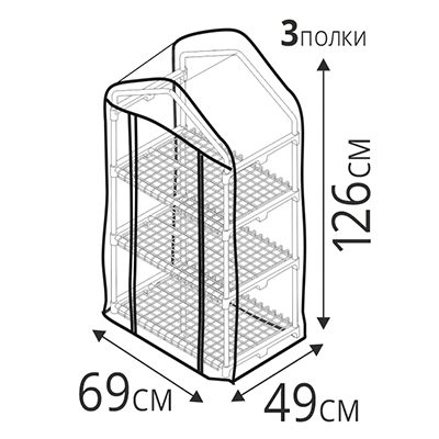 ------Парник для балкона (мет тр в пвх d-16мм+чех: пл пвх) 49х69х126 см разб 3 полки 'Урожайная сотка Эксперт' 21003