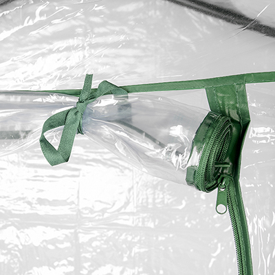 Дверь на молнии позволяет беспрепятственно ухаживать за рассадой, а так же проветривать ее. Завязки сверху фиксируют дверь в открытом положении.