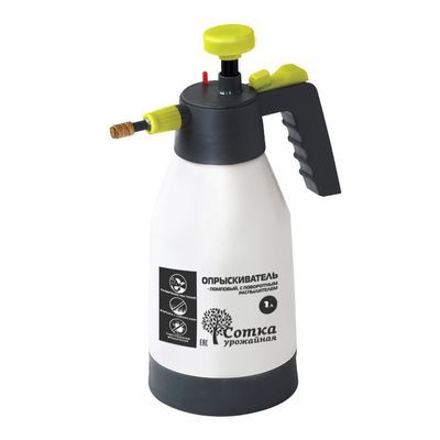 Опрыскиватель помповый с распылителем, металлическим наконечником и поворотной насадкой, которая позволяет регулировать угол распыла.