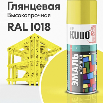 -----Эмаль универсальная аэрозоль желтая RAL1018 KUDO 520 мл