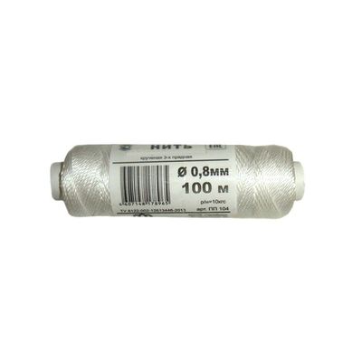 Нить капроновая, крученая 3 пр., d=0,8 мм, катушка 100 м, белая